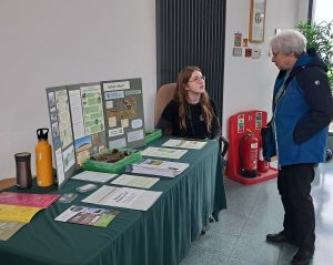 A visitor (above) at the entrance to the Inchinnan Community Land Celebration Day 2025 at the India of Inchinnan Building on Saturday 18 October. Lacey, Development Officer of the Development Trust chats to the visitor at the successful event. Lacey is an Earth Science (Hons) Graduate bringing experience in geoscience and conservation. She supports IDT’s environmental ambitions and engaging our community with these.