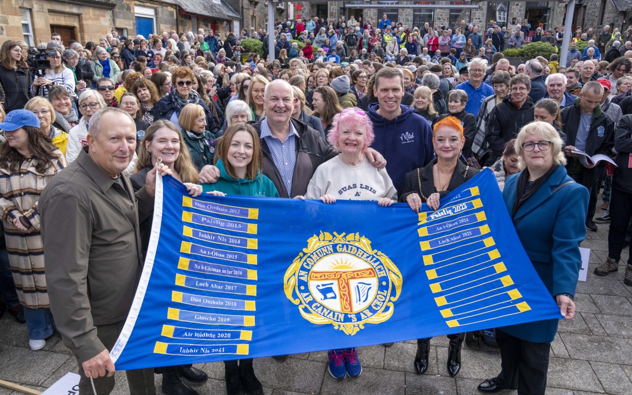 The symbolic Mòd flag was then handed over to 2026 hosts, Glasgow – an urban heartland of the indigenous language in Scotland today.