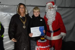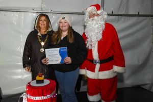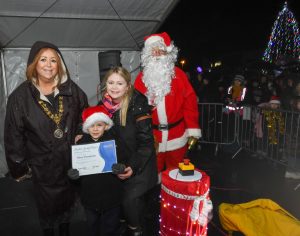 It wouldn’t be Christmas without an appearance from Santa, who joined Renfrewshire Provost Lorraine Cameron and competition winner Ayla from Rashielea Primary School, Erskine to push the button and light up Erskine for the festive season.