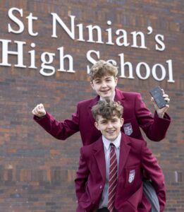 SEEING DOUBLE: Twin brothers Adam and Matthew Darroch couldn’t believe their eyes when they both secured identical exam results. The St Ninian’s High pupils both got 9 As in their National 5 exams.